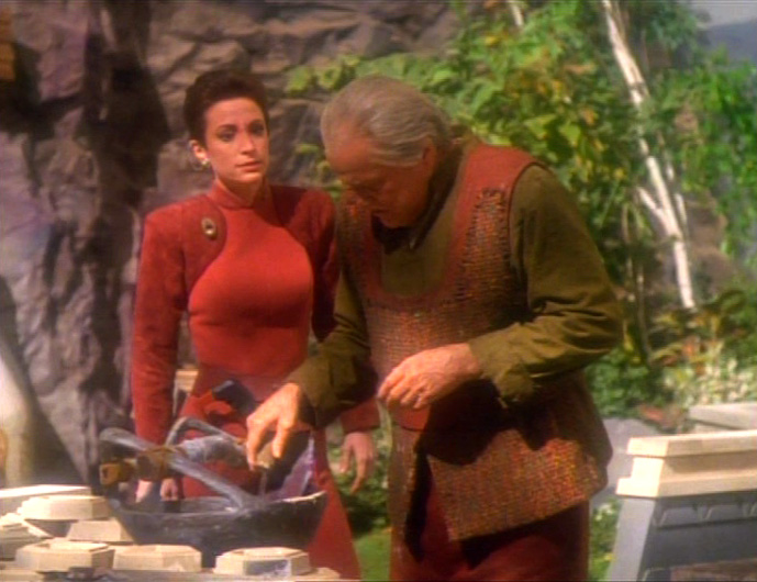 Synopsis: Kira leads the evacuation of a Bajoran moon which is being converted into a massive power plant that will render the entire surface uninhabitable, but an old farmer refuses to leave. Back on the station, Jake and Nog set out to turn an inordinate amount of seemingly worthless condiments into profit.