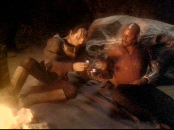 Synopsis: Following the destruction of the starship Honshu, Sisko is severely injured and trapped alone on a deserted planet with Dukat, who becomes increasingly unstable.