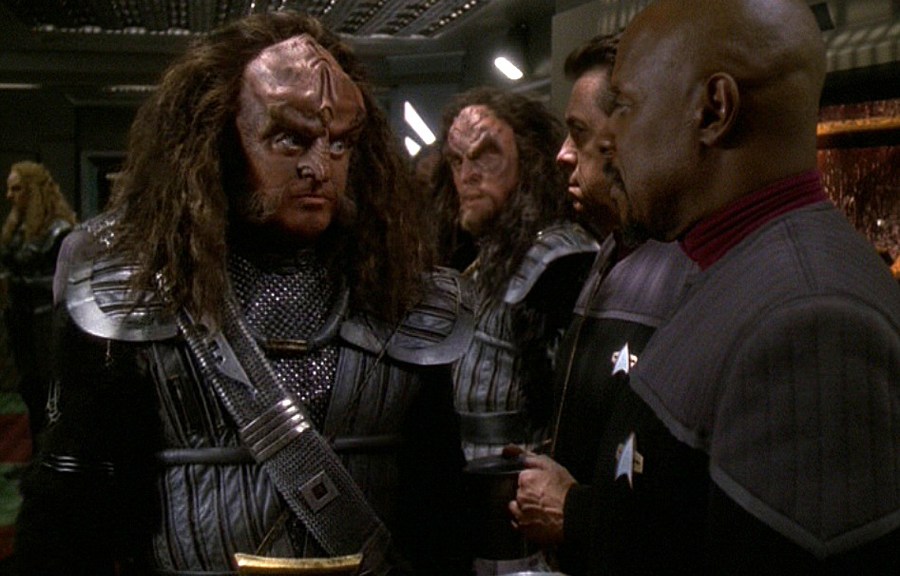 Review: More of a bridge episode than the last couple, this one reintroduces Gowron who wants to thrust his Batleth at the Empire one last time, Dukat predictably getting Pa-Wraithed (I would have preferred Winn outsmart him, but glad she has the upper hand), and some fairly banal despite the circumstances guerrilla warfare training by Nerys to Damar and the Cardassians.