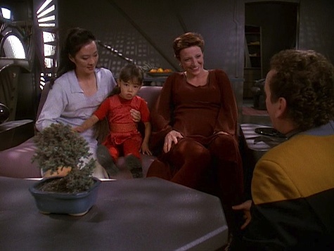 Review: I love Quark and I don’t love Ferengi episodes, but this one ain’t half-bad. Partially because of the totally awesome B-plot with Keiko’s baby being transported into Nerys. Just a perfect solution for the “Nana Visitor is pregnant” problem without resorting to any silliness about Shakaar.