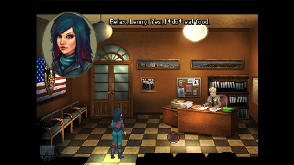Taking place in 1995 (presumably so cell phones and the internet aren’t the immediate solution to every puzzle!), Kathy Rain is at university studying journalism and reluctantly attends her estranged grandfather’s funeral. And because this is an adventure game it sets off the usual plot where Kathy investigates his unusual illness and gets wrapped up in a decades old mystery. However, unlike some of those old adventures, Kathy’s motivation is always clear and consistent. With perhaps one or two exceptions, she doesn’t pick up random objects hoping they’ll be useful later, and everything she does is motivated by who she is as a person. We get to know Kathy very well over the course of the game and her personality is funny and endearing.