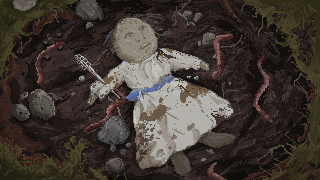 The scenic backdrop does a nice job of transplanting you into rural Victorian-era England, with stone fences, thatched-roof cottages, and market goods being sold out of wagons. The occasional cutscenes are well-animated and effective at heightening the mood. But in several other ways the pixel art graphics are underwhelming. Character sprites are not always distinguishable, especially by their faces, such that older characters look just as young as the children. Another odd design choice is that the opening of doors is not animated. When people leave an area, they just sort of fade out of it like a ghost. Given the nature of the story, for a while I thought perhaps that the townsfolk were indeed apparitions. But as it turns out, the doors just don’t move. Finally, the character walking animation is not always smooth, and in a few cases people appear to be moving along a conveyor belt.
