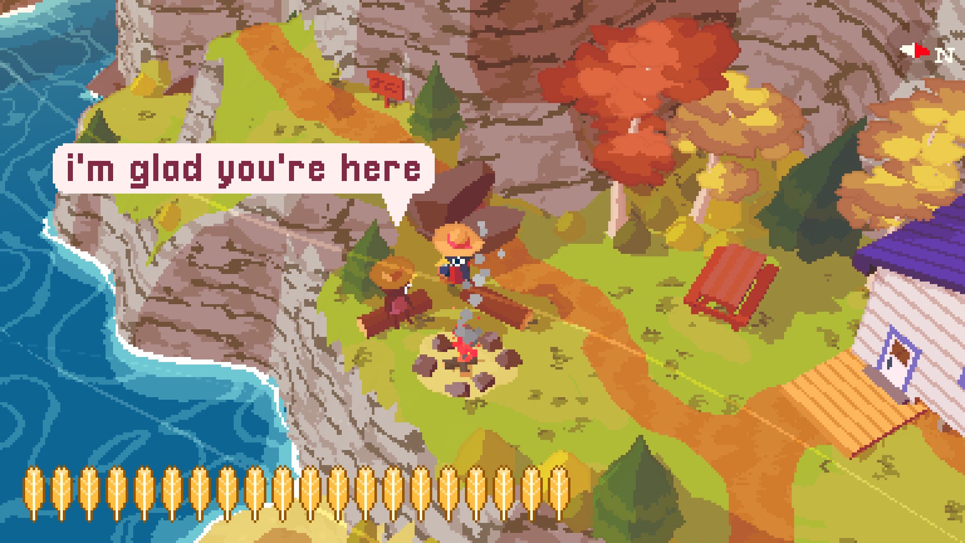 Two essential pieces of gameplay make this a winner. The first is play control, which is about perfect. Moving with Claire (at least with a gamepad) is easy and intuitive. She can’t fly, but she can jump and glide around the 3D voxel environment at ease. And since Claire can’t be hurt, if you mess up your timing you can always keep trying. And since the mountain is not very large, no mistake will set you back more than a minute. Accompanied by gentle upbeat music, A Short Hike is nothing but relaxing.