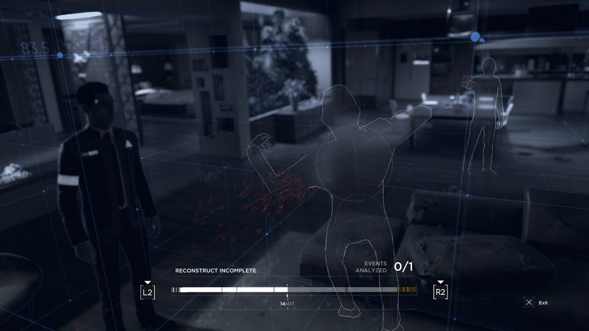 The opening scene has you, playing Connor, entering a hostage situation where a fellow android has a human girl hanging over the edge of a balcony. The cops aren’t exactly happy you’re there, but begrudgingly allow you to try to resolve the situation without any more casualties. Before barging onto the balcony, you are encouraged to search the apartment looking for clues about the android so that you can better understand and empathize with it during the confrontation. Additionally, Connor has the ability to analyze patterns and reconstruct what likely occurred; for example, he can take a look at a dead body, a blood pattern, and a tossed gun to recreate a mental video of the crime. What’s even better is that Connor can do this at lightning speed, essentially pausing the game while you analyze the area. This type of interaction with the environment is used regularly throughout the game much to my delight. I became so dependent on pausing the game in this way that it took me weeks afterwards to stop trying the tactic in other games.
