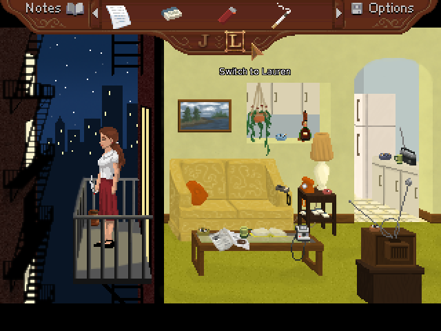 But perhaps most importantly, the acting has improved significantly. Abe Goldfarb, who voices Joey, has become more enjoyable to listen to. A lot of his misogyny has been toned down, and what is still there is appropriately called out by Lauren. But the actor is also just delivering his lines better, and I laughed out loud several times at his sarcastic wit. And Dani Marco excels as Lauren, making me believe this character’s motives, feelings, and relationship with Joey. I found myself a bit annoyed when the game ended, knowing Lauren is not in the next two games of the series. The supporting actors are hit and miss. Disappointingly, the Jamaican studio producer feels like a stereotype. And the old lady just sounds like a caricature of an old lady; I worked in nursing homes for years and never heard anybody talk quite like that. On a positive note, Daryl Lathon does a fine job voicing two distinct black characters.