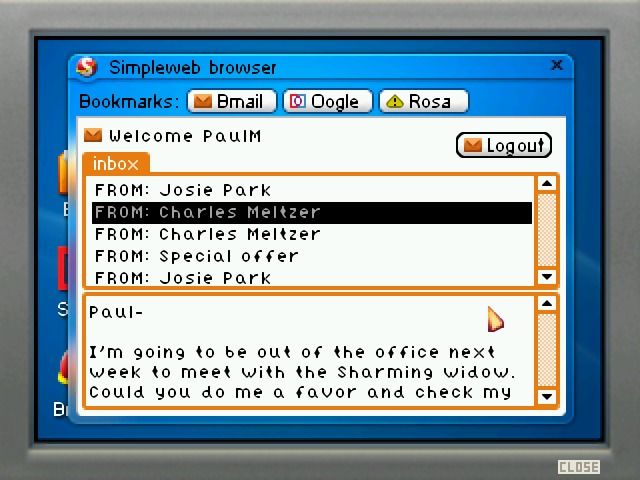 One of the reasons the difficulty (and my entertainment value) bottomed out was the elimination of the puzzle conceit of combining notebook clues to arrive at new information. In its place is Rosangela’s computer where she can use a search engine to learn information and hack into a couple e-mail accounts. This could have been fine, but nearly every answer to the game’s various puzzles are handed to you on a silver platter, and that’s even prior to talking to Joey who offers fairly direct hints when asked.