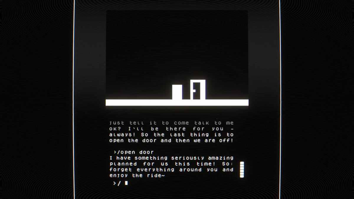 Regardless of what you do, the cipher refuses to go through the door. Or accept any of your commands, for that matter. Meanwhile, the narrator (an on-screen mushroom that helped guide you through the first section) tries to fix things, begging you to distract the cipher in the meantime via conversation, finding ways to make it feel seen and understood, and not just a pawn to be ordered around.