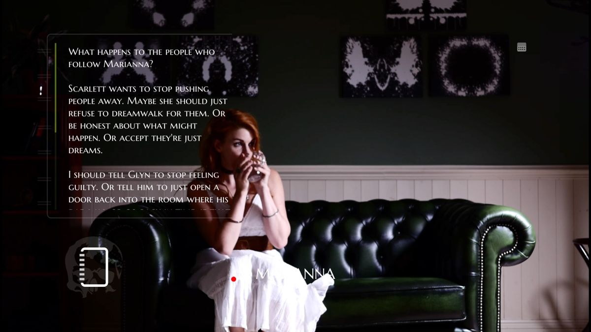 The acting is surprisingly good. With these characters’ histories and the unrealistic plot–not to mention that the actors are only speaking at the camera–I anticipated awkward, cheesy deliveries. Yet other than your assistant who overacts at most every opportunity, everyone else gives a believable and captivating performance. At times I used hints, not necessarily to help my investigation but to just to be able to see more of the acting.