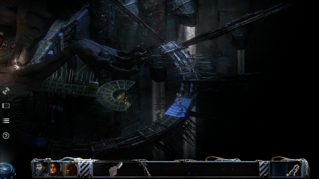 The visuals, which were the clear highlight of the first two games, have also improved. While the perspective remains isometric, the view is more intimate. Rather than viewing a large area from high above, you are much closer to the action, with the screen scrolling as needed. Before I felt like I was looking at gorgeous paintings in a gallery; in Bone Totem it felt like I was there. While some areas are almost too dark to fully enjoy, the hotspot highlighter at least keeps it from being frustrating. The music and sound effects are also of high quality, with ambient noise leading the way and little in the way of jump scares.