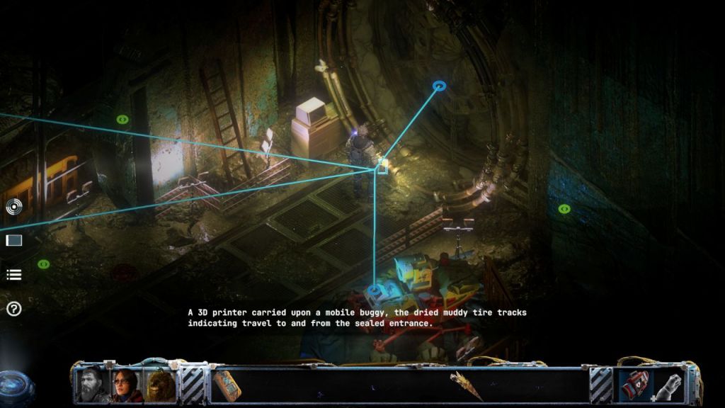 Each of the three family members has their own special skill. Mac has the ability to crush items or separate their individual parts. Charlie the engineer has the ability to take seemingly unrelated objects and MacGyver them together. These actions are simply done by putting items in special slots and clicking the adjacent button to see if it works. Meanwhile, Moses is the super hacker that can fit in tiny spaces and is (mostly) immune to environmental hazards. More than once you’ll have Mac destroy some piece of technology, have Charlie engineer a new device, then give it to Moses who needs it in his neck of the woods.