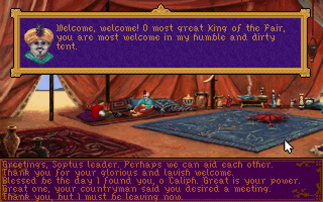 Unfortunately, many more are very poorly clued or simply unintuitive. One involving reciting a love poem that likely requires being very familiar with Shakespeare sonnets is particularly frustrating. There’s also a couple of puzzles that require you successfully navigating a long conversation tree AND then also successfully present the correct item to your foe. Any tiny mistake ends in your death, which restores you to the beginning of the conversation. If you don’t intuitively know the answer, the exercise is painfully repetitive. Speaking of repetitive, it is required you win a game of chance with a sheek at least eight times to get various prizes. While there’s a tiny smidgen of strategy involved, it’s no more entertaining than pulling on a one-armed bandit, and slower at that.