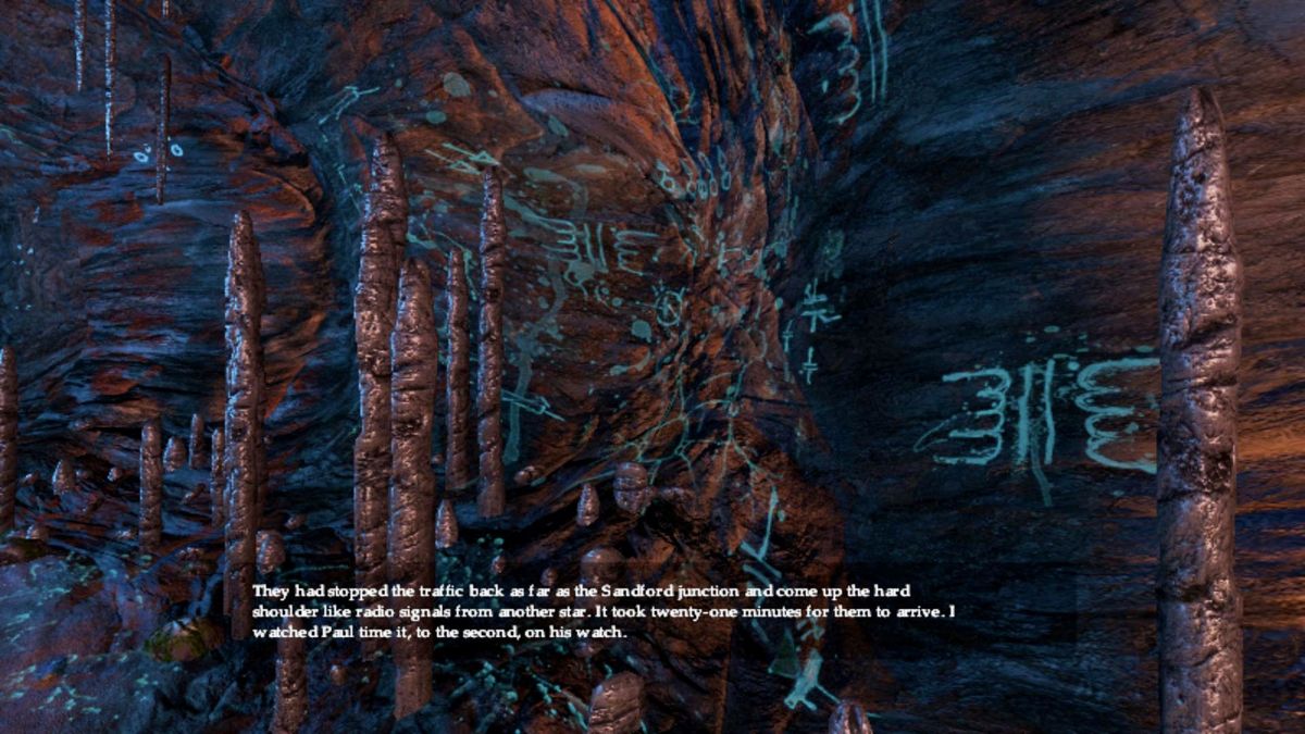The isle mostly consists of grass, shrubbery, and lots of rock, though visually it is more arresting than it sounds, and that’s not even including the gorgeous cave you explore in the third chapter. This place was once inhabited, and you will come across old ships, flotsam, and decrepit buildings. You can’t interact with anything (with one minor exception), and most items are minimally detailed; still, it feels quite real. The orchestral soundtrack is above average, minimalistic, with relaxing and haunting tunes playing at just the right moments.