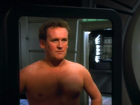 Review: Two-thirds of a good episode in the “O’Brien Must Suffer” genre, this one sees O’Brien as an undercover operative trying to infiltrate the Orion Syndicate. It’s a joy watching Meaney act his way through this role and unlike “The High Ground” on TNG, this one actually has something to do with the season story arc and matters.