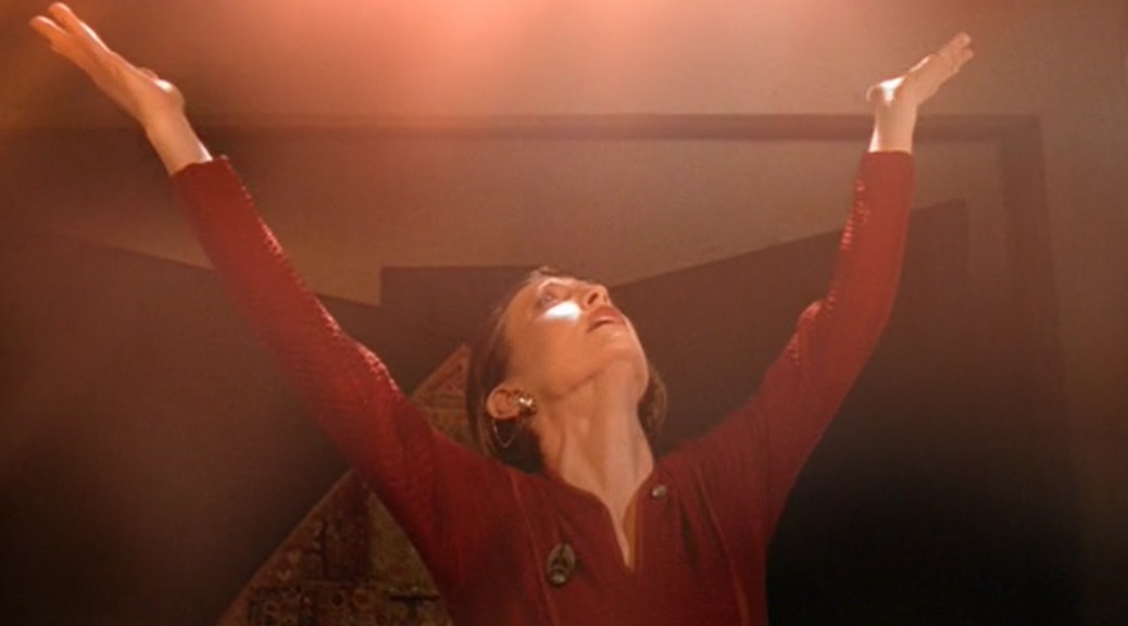 So much of this just felt real: Kira getting jealous of Odo linking with Laas, feeling like she can’t be everything he needs; Odo yearning for a life he gave up; Kira showing her love by letting Odo go; Odo returning that love by staying. But what made me cry was the final scene, where Kira apologizes for making Odo feel like he can’t be himself, and he morphs into a gas and envelops her with his essence. Such a beautiful moment that science fiction was made for and what Trek is all about.